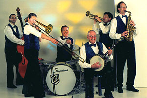 individual musical capacities. Through the years, a large and most varied band book has been built consisting of the highlights from the early jazz period, with additional own compositions and some sidesteps to other musical styles like Latin American and Rock 'n Roll. The band dresses in Tuxedo or in happy Dixie-outfit. The musicians are: